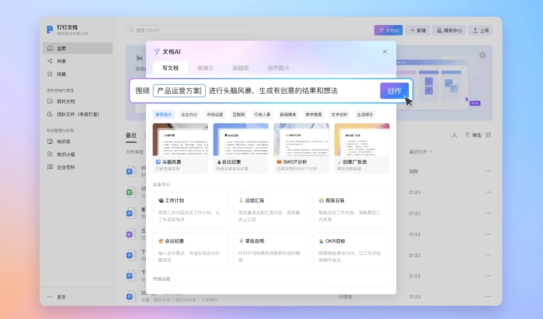 提供超過 50+ 創作指令,快速上手,一鍵輕松完成各種場景的文檔內容創作。
